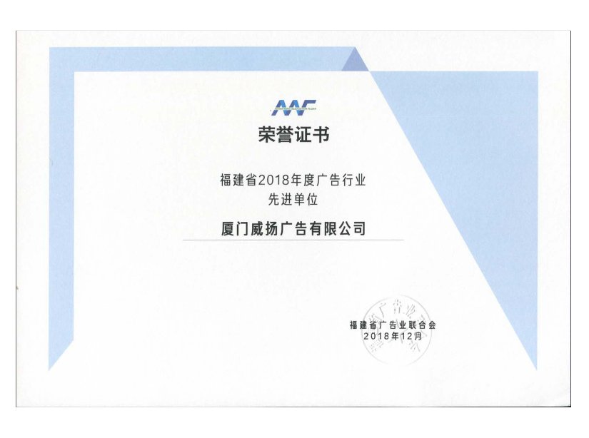 2018年度福建省廣告行業(yè)先進(jìn)單位